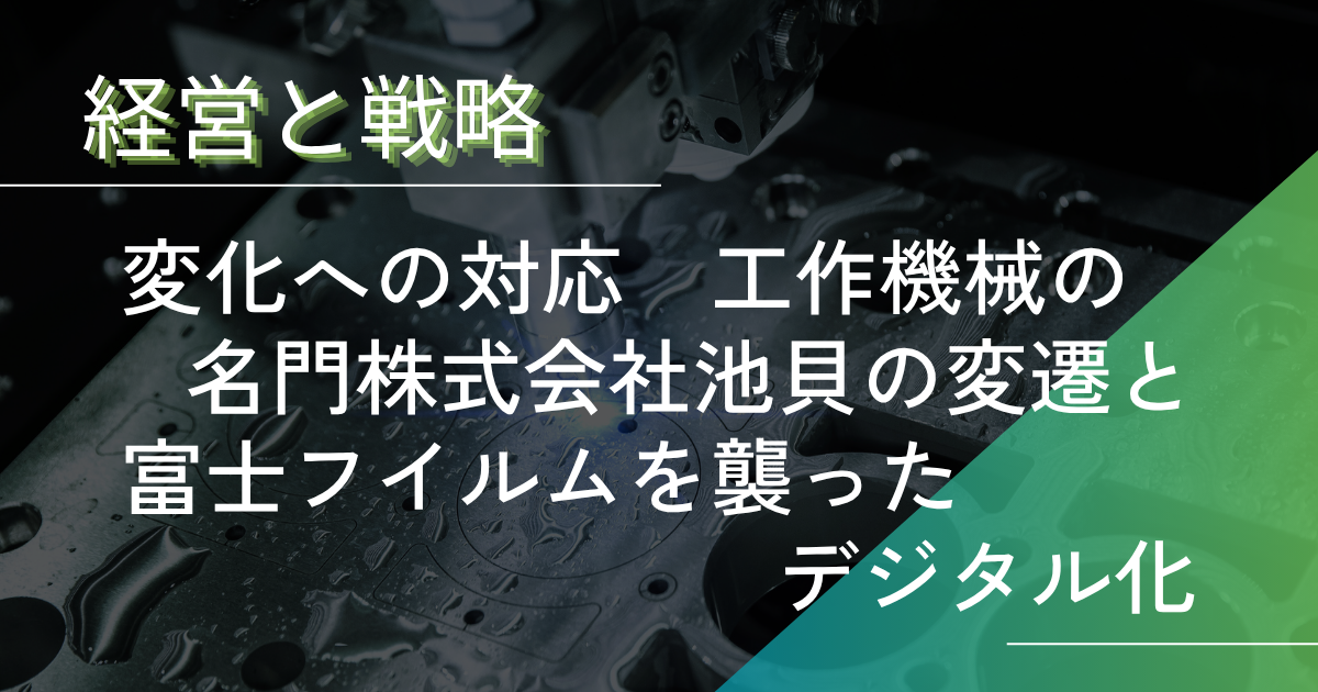 池貝は産業構造変化に適応できず衰退したが、富士フイルムはデジタル化の激変を乗り越えた。後者は本業技術を活かした多角化とM&Aを推進し、経営者の大胆な変革と現実直視が成功の鍵だった。現代は過去より速い変化が起きている。