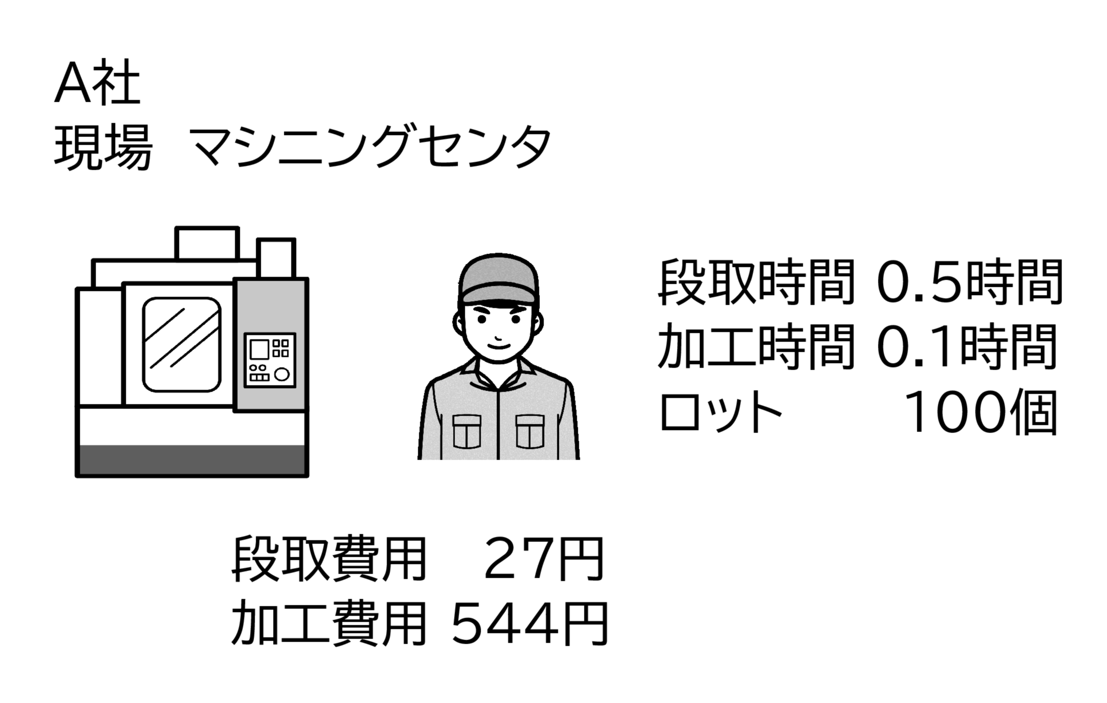 加工費用=アワーレート(人と設備)×加工時間=5,440×0.1=544円