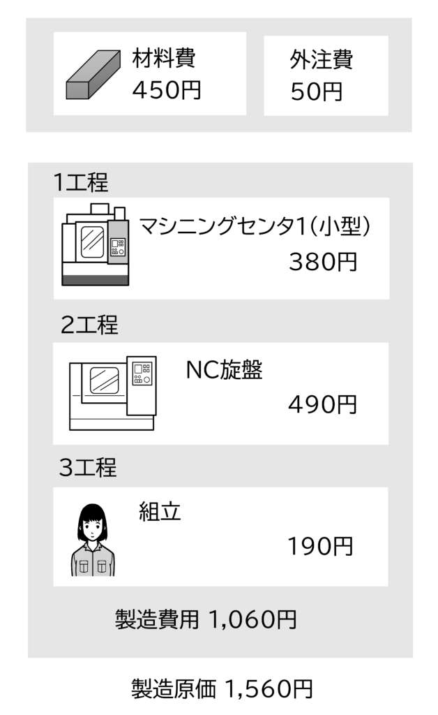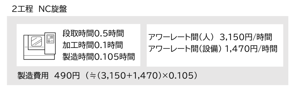 2工程のNC旋盤の製造費用を図に示します。