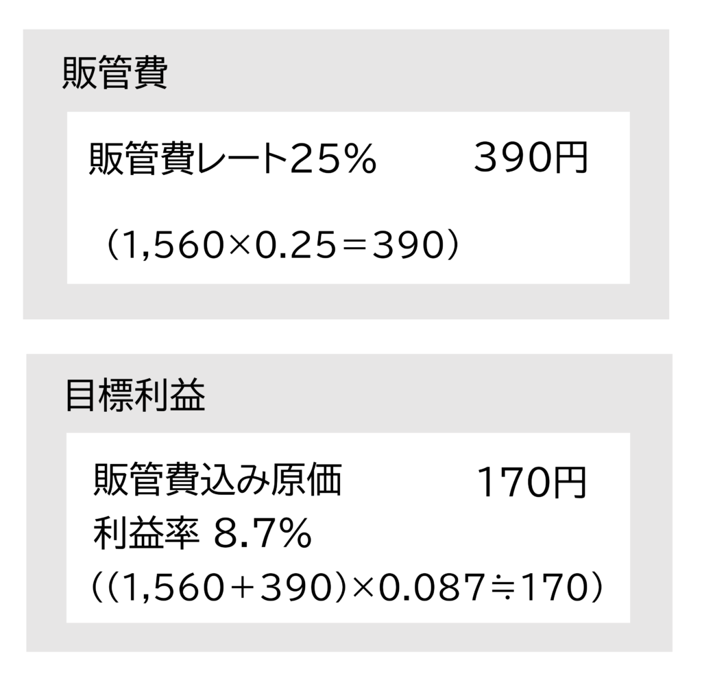 目標利益=販管費込み原価×販管費込み原価利益率