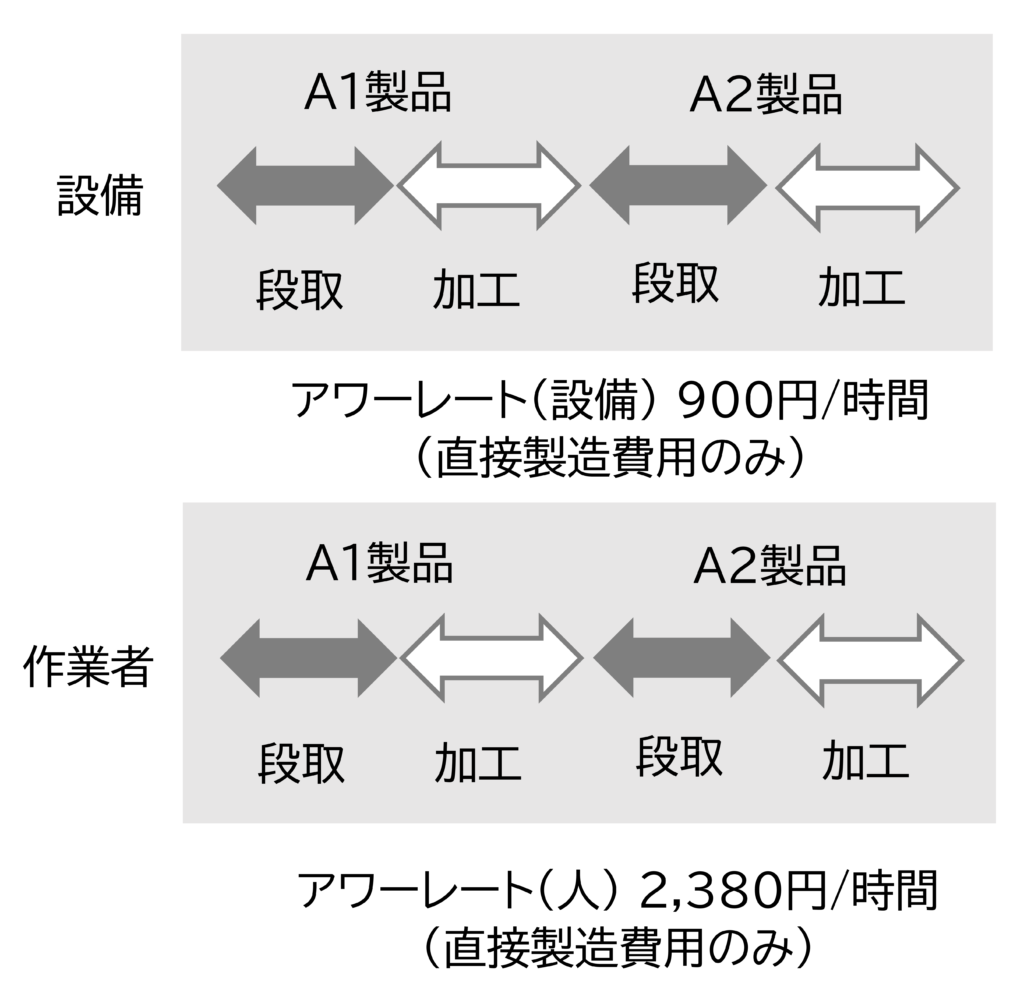 従って段取のアワーレートは、アワーレート間(設備)とアワーレート間(人)の合計です。