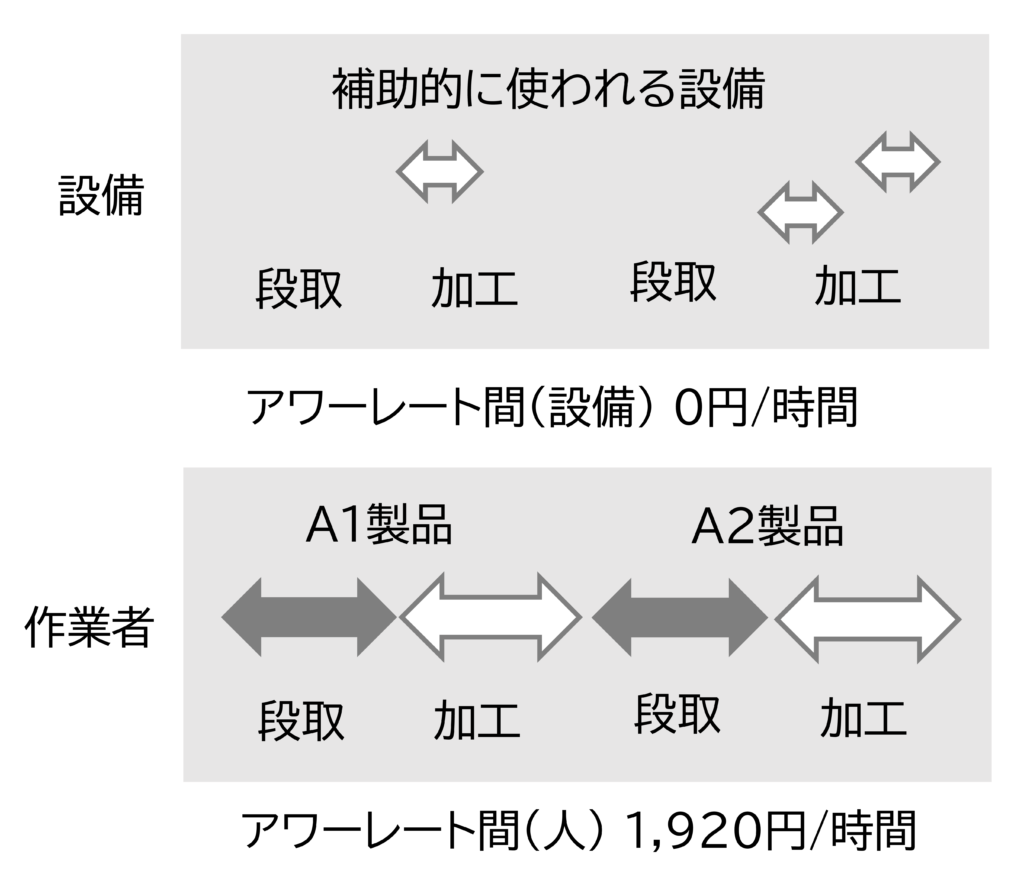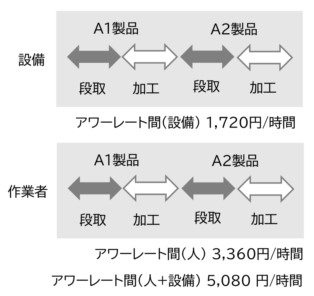 有人加工の場合、アワーレートはアワーレート間(設備)と