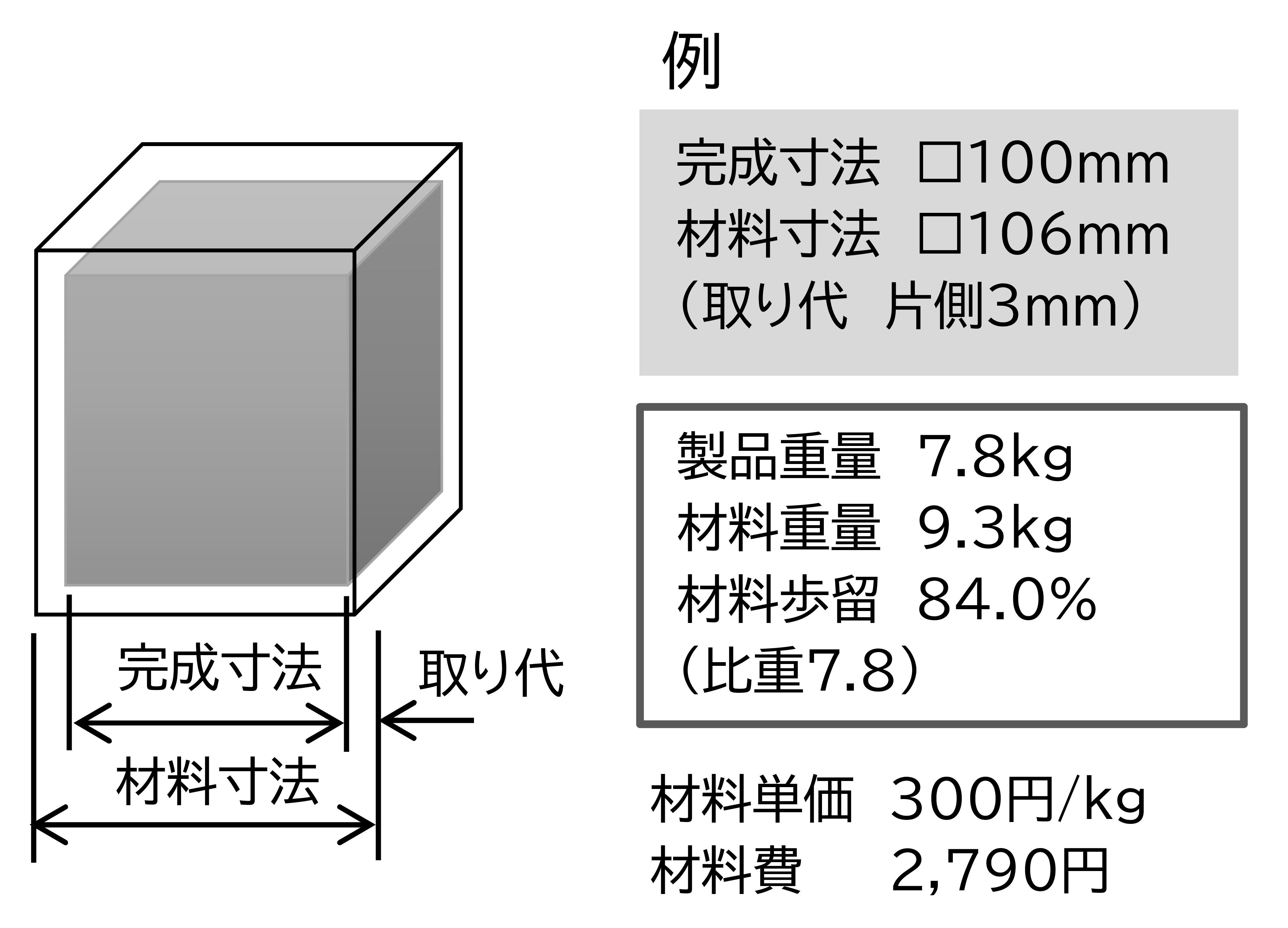 切削加工の材料歩留の計算例