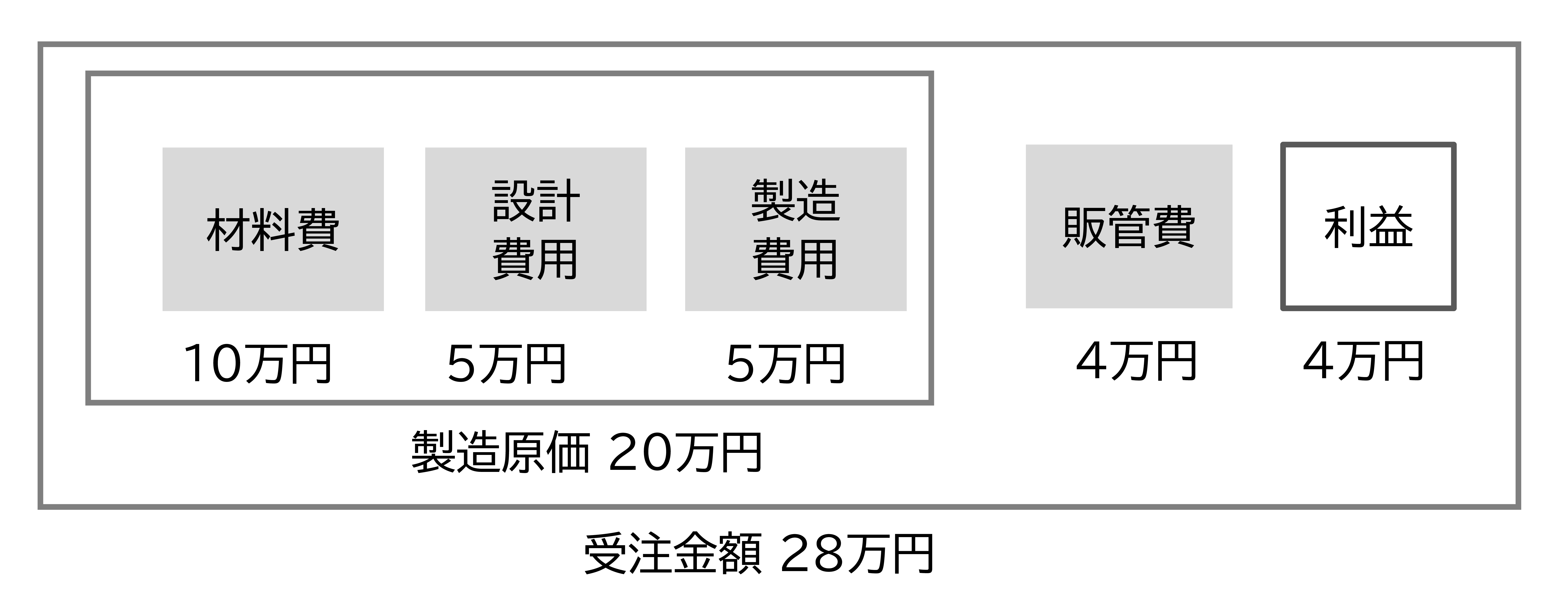実際は、材料費、設計費用、製造費用が見積よりも増えて0.8万円の赤字でした。こうしたことが毎回起こるのであれば、その分見積を高くします。